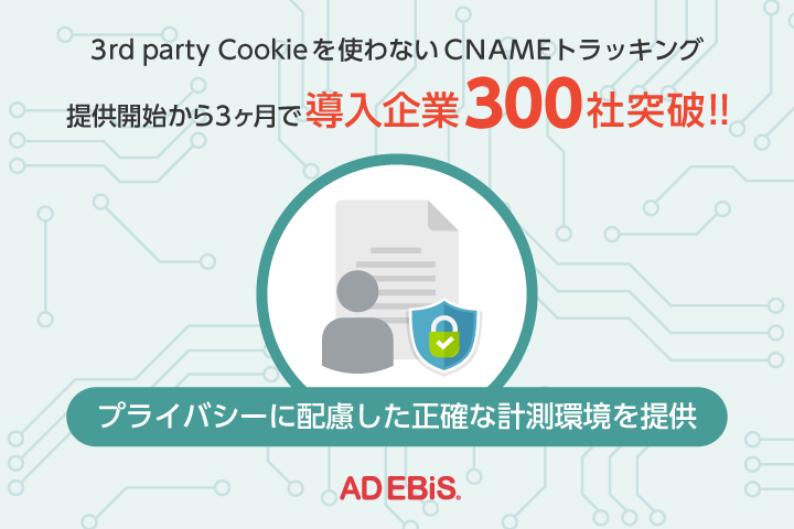 アドエビス、3rd party Cookieを使わない新計測法「CNAMEトラッキング」が提供開始から3ヶ月で導入企業300社突破!