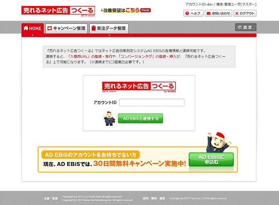 今回の連携は、去る2011年5月にリリースしたアドエビスAPIを活用することにより、アドエビスにログインすることなく、『売れるネット広告つくーる』側で測定タグの埋め込みや入稿URLの設定を行うことが可能となりました。