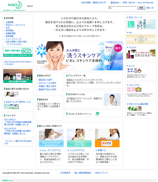 花王様は、1887年の創業以来、消費者・顧客の立場にたった「よきモノづくり」を原点にされています。グループ各社・各部門が相互に有機的に連携しあい、 “よきモノづくり” を通して、お客さまと感動を共有できるような製品やサービスをお届けされています。