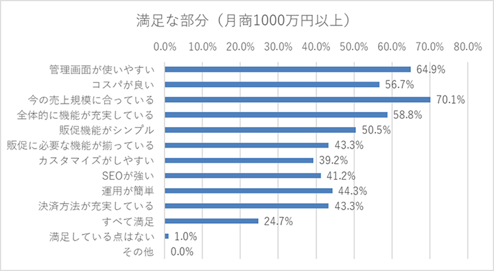 ※1出典:ECマーケティング株式会社調べ。ネットショップ動向調査 ~ 小規模/大規模ネットショップ~月商1000万円未満/1000万円以上のそれぞれのWeb担当者に聞いた!現在使っているカートシステムの満足度は?