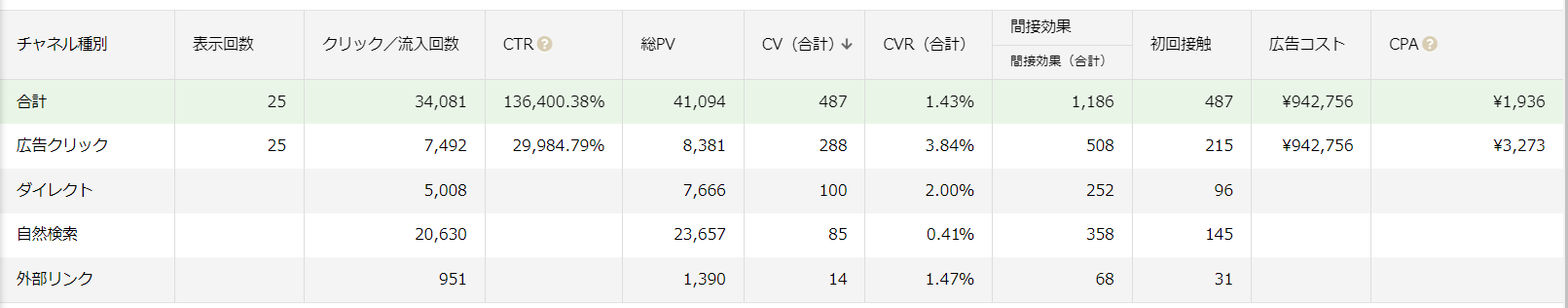 広告経由だけでなく、自然検索や外部リンク経由といった全ての流入経路の成果を一画面で把握することができます。各種計測データは最短30分で管理画面へ反映されるため、リアルタイムに近しいデータ分析が可能です。